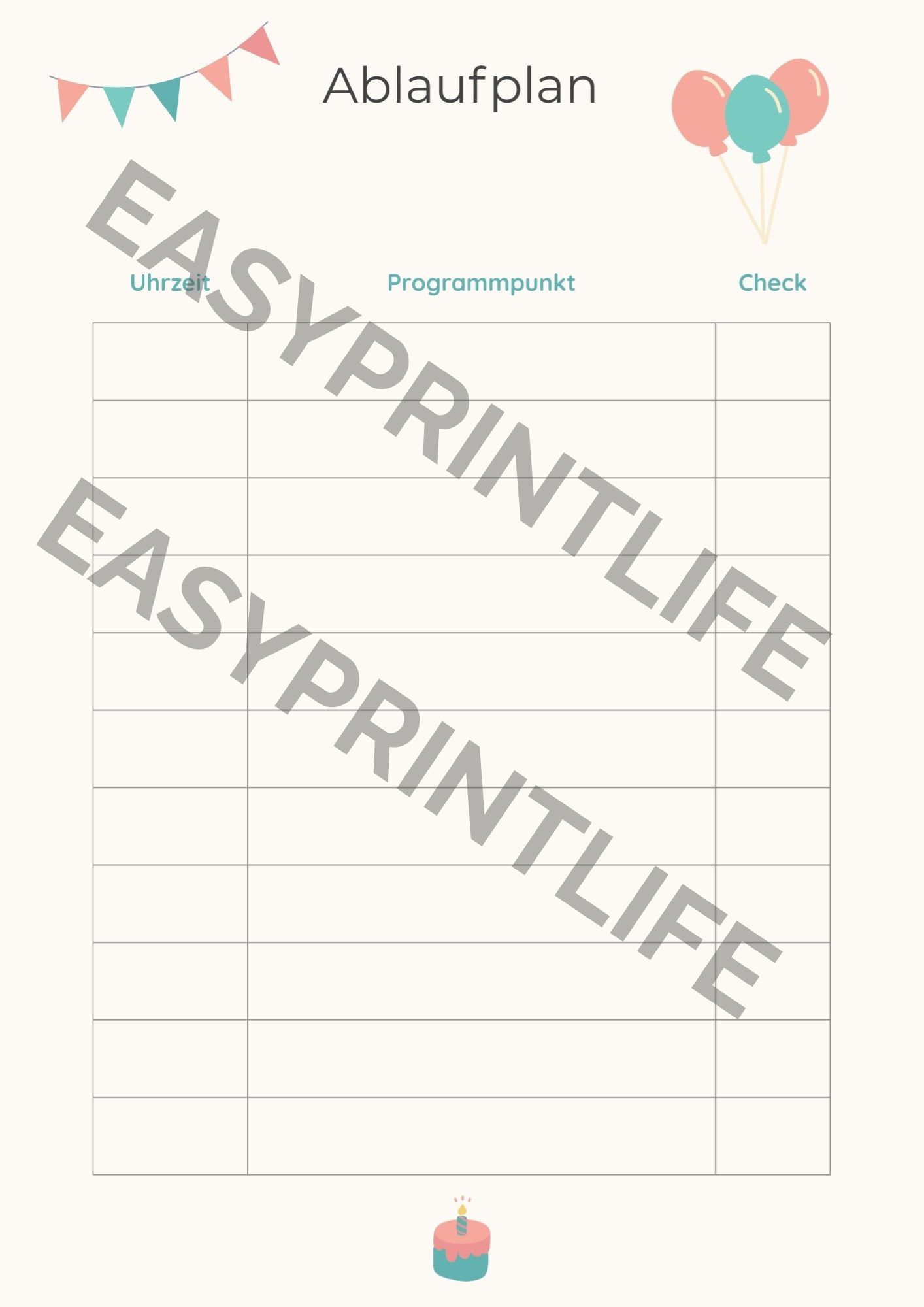 Ablaufplan & Übersicht zum Selber-Ausfüllen