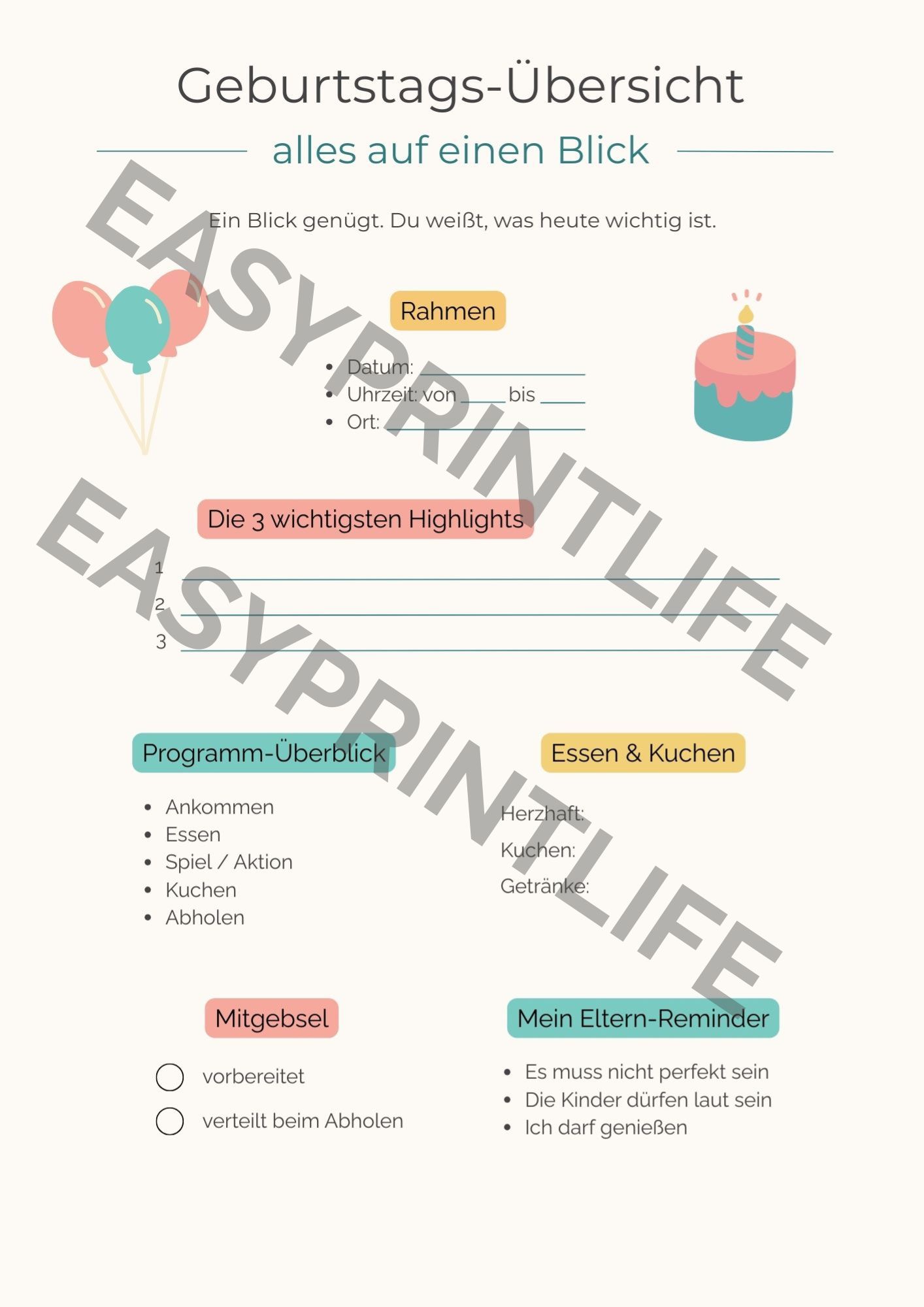 Jetzt darfst du den Geburtstag begleiten nicht perfekt organisieren.