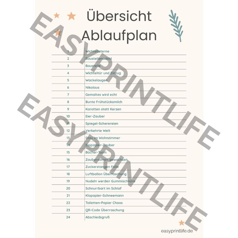 • Wichtel-Ablaufplan – strukturierter Plan für den kompletten Advent mit passenden Wichtelbriefen. 1 Satz mit Wichtelin Freesie und einer allgemeinen Ansprache und 1 Satz Briefe mit Platz zum ausfüllen der Kindernamen und dem Namen von eurem Wichtel